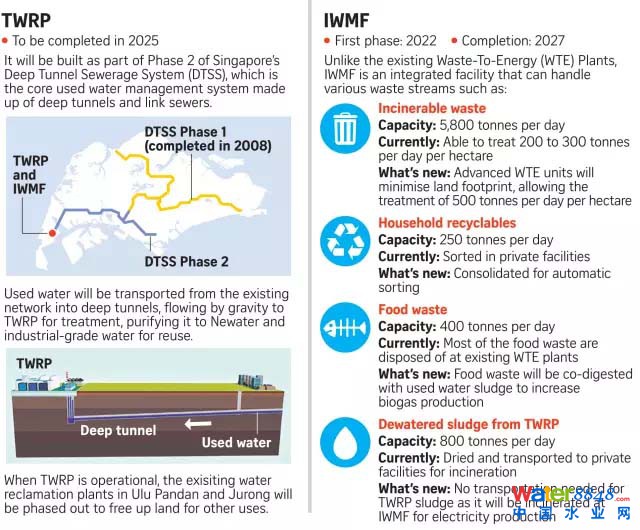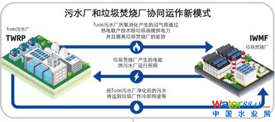 新加坡政府的想法是讓位于新加坡西邊的Tuas再生水廠(Tuas Water Reclamation Plant - TWRP)和垃圾綜合處理廠(Integrated Waste Management Facility -IWMF)協(xié)同合作,實(shí)現(xiàn)能量自給。