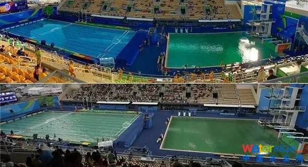在花樣游泳運(yùn)動(dòng)員抱怨泳池太綠,他們比賽時(shí)都看不清互相之后,里約官方終于重新放水清理了大池……