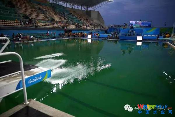 ▲里約當(dāng)?shù)貢r(shí)間8月9日,在女子雙人十米跳水決賽中,瑪麗亞蓮克水中運(yùn)動(dòng)中心的賽場泳池里的水突然逐漸變綠;隨后幾天,水球池也開始變綠。