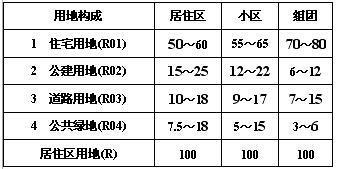 居住區(qū)用地包括住宅用地、公共服務設施用地(也稱公建用地)、道路用地和公共綠地四項,它們之間存有一定的比例關系,主要反映土地使用的合理性與經(jīng)濟性,它們之間的比例關系及每人平均用地水平是必要的基本指標。在規(guī)劃范圍內還包括一些與居住區(qū)沒有直接配套關系的其他用地,如外圍道路或保留的企事業(yè)單位、不能建設的用地、城市級公建用地、城市干道、自然村等,這些都不能參與用地平衡,否則無可比性。但“其他用地” 在居住區(qū)規(guī)劃中也必定存在(外圍道路),因此它也是一個基本指標,居住區(qū)用地加“其他用地”即為居住區(qū)規(guī)劃總用地。