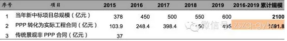表:東方園林2015-2019年新中標PPP項目及實際轉(zhuǎn)化工程合同量估算