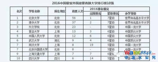 2016中國最受外國政要青睞大學(xué)排行榜10強