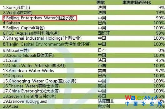 北控水務(wù)名列“全球TOP40水務(wù)公司”第三位
