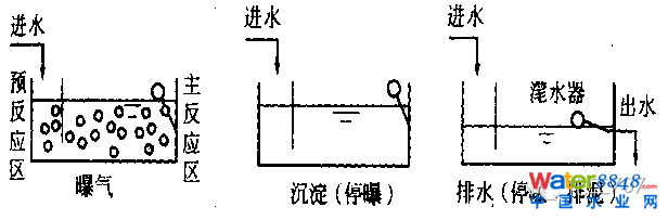 SBR工藝的基本運行模式由進水、反應、沉淀、出水和閑置五個基本過程組成,從污水流入到閑置結(jié)束構成一個周期,在每個周期里上述過程都是在一個設有曝氣或攪拌裝置的反應器內(nèi)依次進行的。