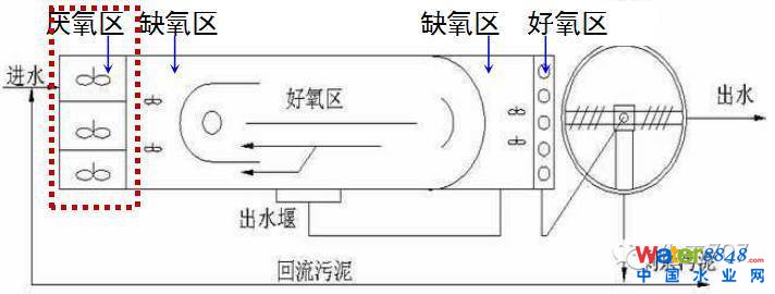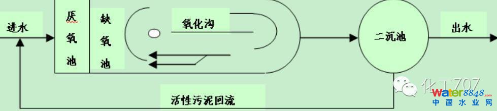 這種工藝在氧化溝上游加設前置厭氧池,可有效抑制活性污泥膨脹,提高活性污泥的沉降性能.同時為生物除磷提供了條件。水中磷的含量通常在2mg/L以下。