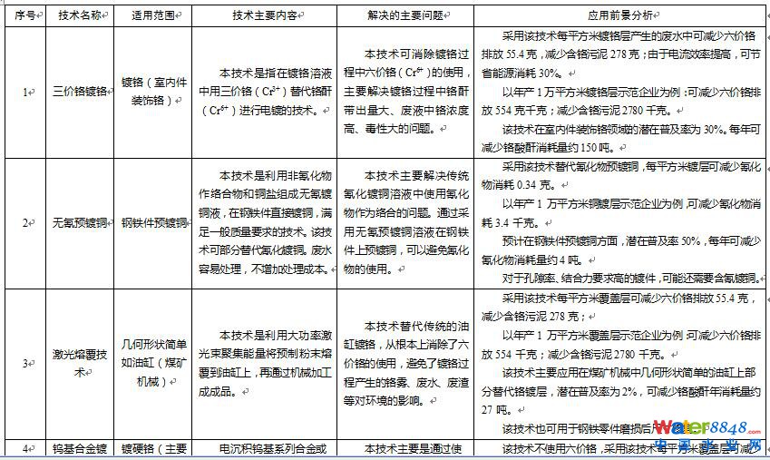 造紙、食品加工、制革、紡織、有色金屬、氮肥、農(nóng)藥、焦化、電鍍、化學(xué)原料藥和染料顏料制造等行業(yè)水污染物排放量約占全部工業(yè)的50%,是工業(yè)水污染防治的重點(diǎn)領(lǐng)域。通過在水污染防治重點(diǎn)行業(yè)推廣采用先進(jìn)適用清潔生產(chǎn)技術(shù),實(shí)施清潔生產(chǎn)技術(shù)改造,從源頭減少廢水、化學(xué)需氧量(COD)、氨氮、含鉻污泥(含水量80-90%)等污染物的產(chǎn)生和排放。