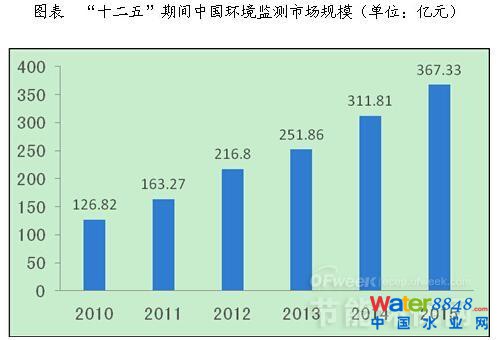 在“十二五”的政策熱潮下,我國環(huán)境監(jiān)測行業(yè)發(fā)展迅速,2015年行業(yè)規(guī)模超過367億元,“十二五”期間行業(yè)復(fù)合增速達到17.6%。但是對比整個萬億級的環(huán)保市場而言,環(huán)境監(jiān)測的市場規(guī)模較小,未來市場增長空間巨大。