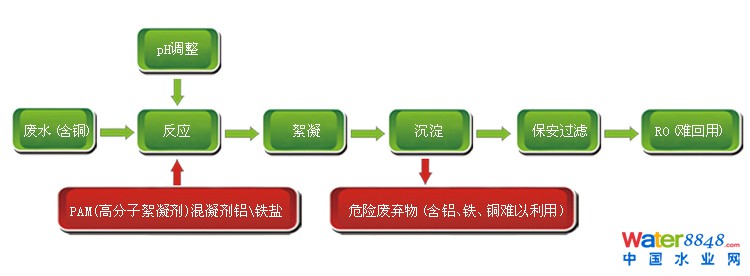 該技術(shù)運(yùn)用特種膜技術(shù)截留小顆粒晶核,并采用脈沖震動(dòng)體系防止膜堵,處理過(guò)程中不加入鐵鹽、鋁鹽等絮凝劑,形成的固體懸浮物重金屬含量高,易脫水,可直接資源化回收利用。