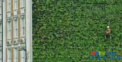 倫敦皇宮酒店的Rubens垂直綠化主要是用于減少城市內(nèi)澇,垂直綠化墻包含了10000種草本植物,高度是68英尺。加里˙格蘭特的設(shè)計是通過屋頂截留雨水,然后慢慢地流在墻上,一方面這樣降低了雨水到達(dá)街道上的量,另一方面綠化墻也會減少空氣污染和噪音。