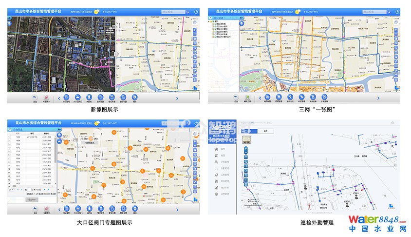 昆山市水務綜合管線項目采用當前先進的技術(shù)手段建設新型的三水合一的綜合管網(wǎng)管理共享開放系統(tǒng),通過將GIS技術(shù)、網(wǎng)絡技術(shù)、數(shù)據(jù)庫技術(shù)、多媒體技術(shù)有效整合,提升城市水務管網(wǎng)管理水平,實現(xiàn)水務綜合管網(wǎng)管理的科學化、現(xiàn)代化、信息化,是昆山智慧水務建設的重要組成部分,主要內(nèi)容包括:管網(wǎng)數(shù)據(jù)建設編輯和更新系統(tǒng)、基于 GIS 的巡檢系統(tǒng)、基于 WebGIS 的綜合展示平臺。通過本系統(tǒng)的建成,實現(xiàn)昆山水司管網(wǎng)從設計、數(shù)據(jù)管理、運維的全方位管理,提升水務公司管理效能。