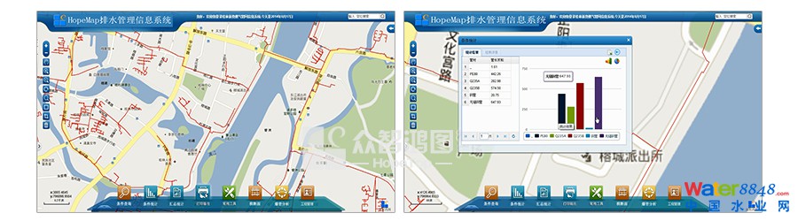 桂林排水管網(wǎng)GIS共享服務(wù)系統(tǒng)實(shí)現(xiàn)了對(duì)現(xiàn)有排水管網(wǎng)GIS系統(tǒng)進(jìn)行擴(kuò)展,新增在線地圖服務(wù)接入方式。采用服務(wù)對(duì)接的方式,獲取桂林市政熱線綜合管線系統(tǒng)發(fā)布出來(lái)的地形圖數(shù)據(jù),解決地形圖更新問(wèn)題,輔助管網(wǎng)數(shù)據(jù)的錄入以及更新。同時(shí)系統(tǒng)對(duì)排水管網(wǎng)數(shù)據(jù)進(jìn)行發(fā)布,在B/S框架中展示排水管網(wǎng)以及地形數(shù)據(jù),系統(tǒng)還支持對(duì)發(fā)布出來(lái)的數(shù)據(jù)進(jìn)行查詢(xún)、統(tǒng)計(jì)以及分析等操作,為桂林排水管理處內(nèi)部的信息化提供了數(shù)據(jù)支撐,為排水管理處的日常生產(chǎn)運(yùn)營(yíng)提供了便利。