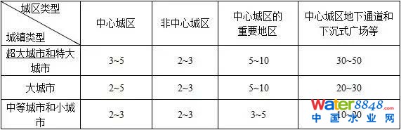 【條文說(shuō)明】城鎮(zhèn)內(nèi)澇防治的主要目的是將降雨期間的地面積水控制在可接受的范圍。鑒于我國(guó)還沒(méi)有專(zhuān)門(mén)針對(duì)內(nèi)澇防治的設(shè)計(jì)標(biāo)準(zhǔn),本規(guī)范表3.2.4B列出了內(nèi)澇防治設(shè)計(jì)重現(xiàn)期和積水深度標(biāo)準(zhǔn),,用以規(guī)范和指導(dǎo)內(nèi)澇防治設(shè)施的設(shè)計(jì)。