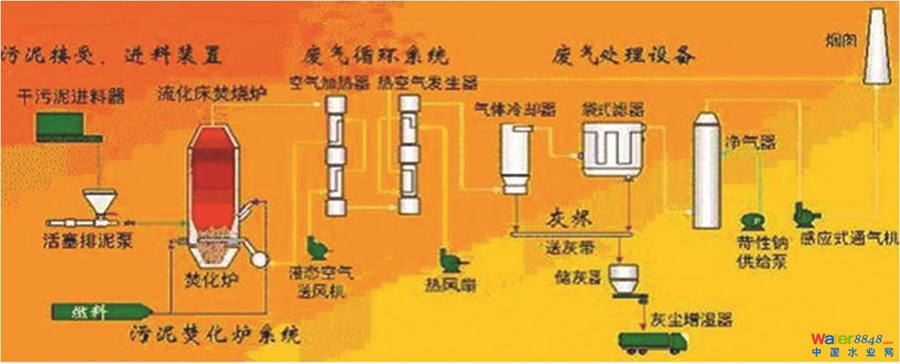 用異密度循環(huán)流化床燃燒方法,其原理是采用石英砂與石灰石作為異密度流化床的媒體物料,實現(xiàn)污泥與拌燒燃料的異密度循環(huán)流化床燃燒。