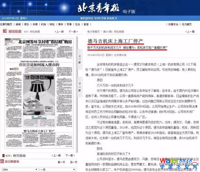 2016年9月10日的《北京青年報(bào)》看法了一篇令我萬分震驚的報(bào)道:全球領(lǐng)先的機(jī)床制造企業(yè)——德克爾馬豪吉特邁(上海)機(jī)床有限公司(以下簡稱“德馬吉”)日前宣布上海工廠停產(chǎn),員工解除勞動(dòng)合同,引發(fā)網(wǎng)友唏噓。有人乘機(jī)吐槽,賣100臺(tái)機(jī)床不如去離婚炒房。