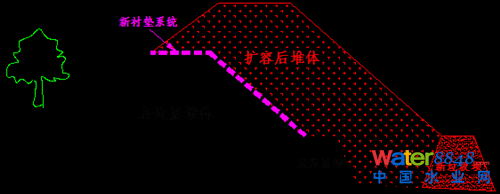 橫向擴(kuò)容技術(shù)是在老垃圾填埋場的附近進(jìn)行橫向擴(kuò)張,新建垃圾壩和對擴(kuò)張的區(qū)域鋪設(shè)襯墊系統(tǒng),利用原有的老垃圾填埋場,同時進(jìn)行豎向上的加高,使從老垃圾填埋場附近橫向擴(kuò)張較小的占地面積,就能擁有較大的庫容。