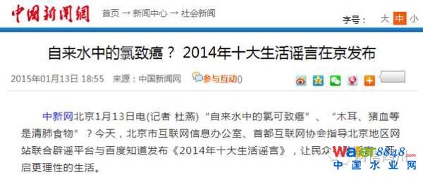 另外,小編查了一下有關(guān)信息,發(fā)現(xiàn)2014年的十大生活謠言中,《自來(lái)水中的氯可致癌》就被證實(shí)了是謠言。