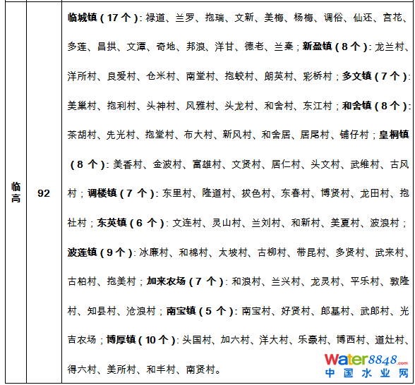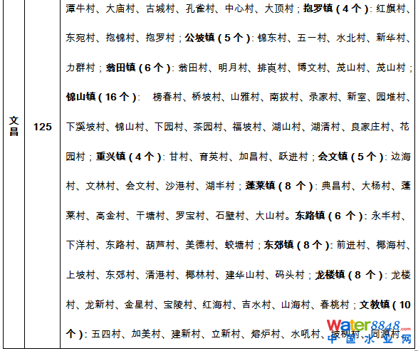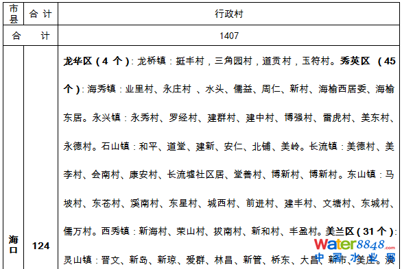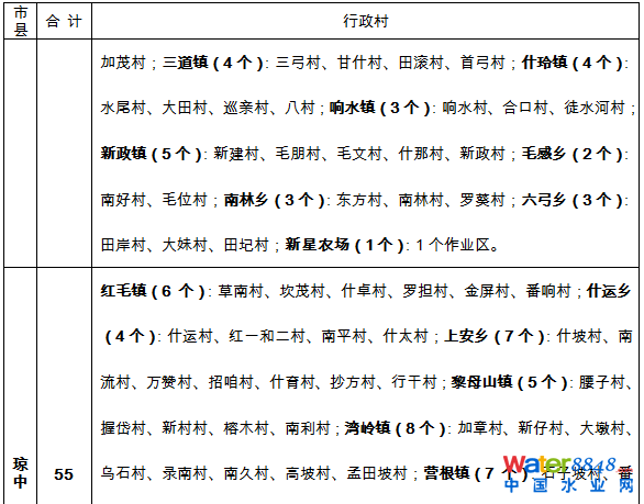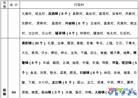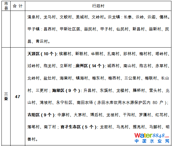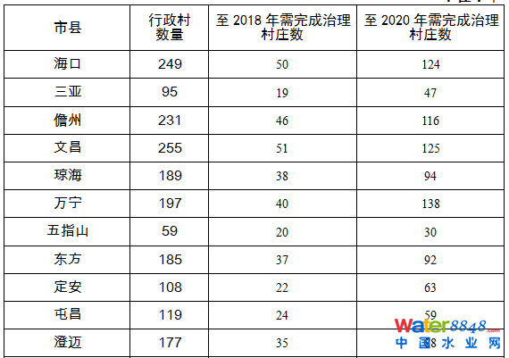 海南省農(nóng)村生活污水治理村莊名單(2016-2020)