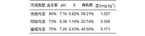 本次研究的實(shí)驗(yàn)材料為3種不同類型的新鮮污泥:市政污泥、印染污泥和造紙污泥,分別采自杭州城市污水處理廠、江陰印染污水處理廠和富陽造紙污水處理廠.