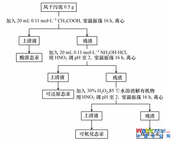 圖 1 污泥BCR法重金屬汞形態(tài)分級(jí)提取程序