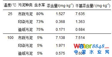 表1 三種污泥的基本特征參數(shù)與汞含量