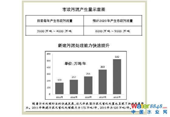 “截至2016年3月,我國已建3910多座城鎮(zhèn)污水處理廠,污水處理廠能力已達(dá)到1.67億立方米/日。作為污水的衍生品,我國每年產(chǎn)生3000萬噸~4000 萬噸市政污泥(含水率在80%)。”中國工程院院士侯立安在日前舉辦的“2016污泥高峰論壇(第三屆)”上表示,預(yù)計到2020 年,我國的市政污泥產(chǎn)量將達(dá)到6000萬噸~9000 萬噸。