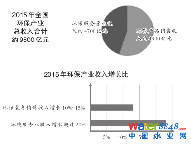 據(jù)估算,去年全國環(huán)境保護(hù)產(chǎn)品銷售收入約4700億元,環(huán)境保護(hù)服務(wù)營業(yè)收入約4900億元,合計約9600億元。2015 年環(huán)保裝備銷售收入增長10%~15%,環(huán)境服務(wù)業(yè)增長超過20%。