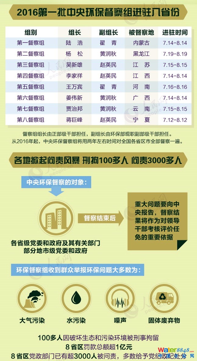 2016年第一批中央環(huán)保督察組進(jìn)駐八省份分組情況