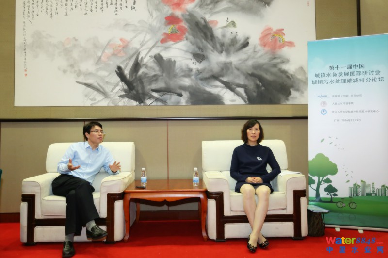 照片4:賽萊默公司中國總裁呂淑萍及王洪臣教授接受媒體采訪