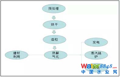 污泥熱解氣化技術(shù)是將污泥熱解氣化作為污泥處置的核心技術(shù),以烘干、造粒、尾氣處置、廢渣利用為依托的系統(tǒng)工程。該技術(shù)工藝流程為:與處理后的污泥經(jīng)過低溫烘干,去除污泥表面的附著水及內(nèi)含水。烘干后的污泥在熱解氣化之前完成造粒,制成棒狀或片狀的均勻顆粒,烘干廢氣進(jìn)入氣化系統(tǒng),造粒后的污泥進(jìn)行熱解氣化,污泥中的有機(jī)物被氣化成可燃?xì)怏w,無機(jī)物以殘?jiān)男问脚懦?扇細(xì)怏w燃燒處理,可以利用能量,同時(shí)將有害物質(zhì)轉(zhuǎn)換為煙氣,干凈的熱解氣供應(yīng)給發(fā)動(dòng)機(jī)或者燃?xì)廨啓C(jī);熱解出的固體殘?jiān)阅芊(wěn)定,可耐強(qiáng)酸腐蝕,而重金屬被固化在內(nèi)較難析出,由于其容易濕潤,所以出渣裝置需配備防堵塞措施。