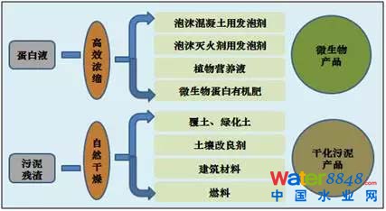 污泥經(jīng)水解處理后,其含蛋白液體經(jīng)濃縮后可作為蛋白發(fā)泡劑和有機(jī)肥等利用,污泥殘?jiān)捎米龈餐、綠化土、土壤改良劑和建筑材料等。