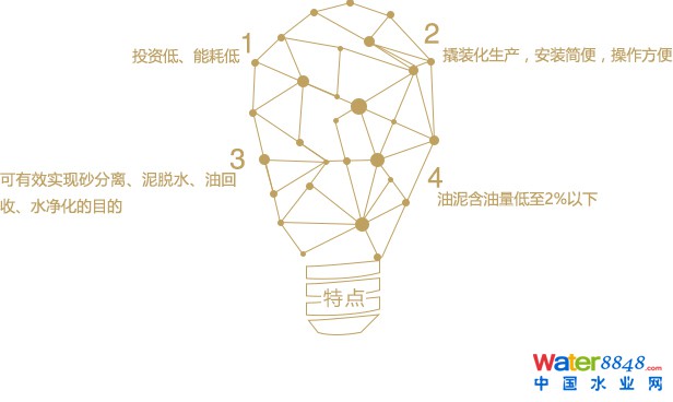 WOSS工藝是通過篩分、碾壓破碎、三級(jí)水洗、旋流出砂、離心脫水、氣浮除油等多種工藝結(jié)合并通過投加特種藥劑達(dá)到砂分離、泥脫水、油回收、水凈化的目的。