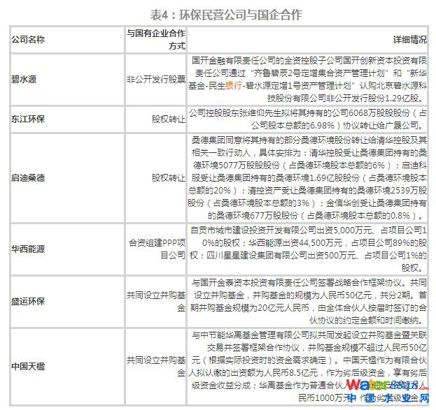 國企化:國企和央企的資源更為豐富,近兩年有越來越多的環(huán)保上市公司通過定增引入國企為戰(zhàn)略投資者,通過民營國企化的混合經(jīng)營方式來獲取更多項目資源。