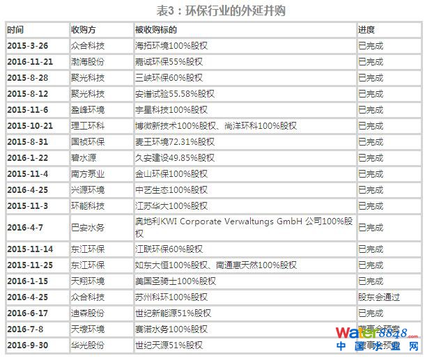 我們認(rèn)為隨著模式變化、監(jiān)管加嚴(yán)、要求提升等的變化,環(huán)保行業(yè)小而亂的局面將逐漸改變,并購重組增加,行業(yè)洗牌加劇。