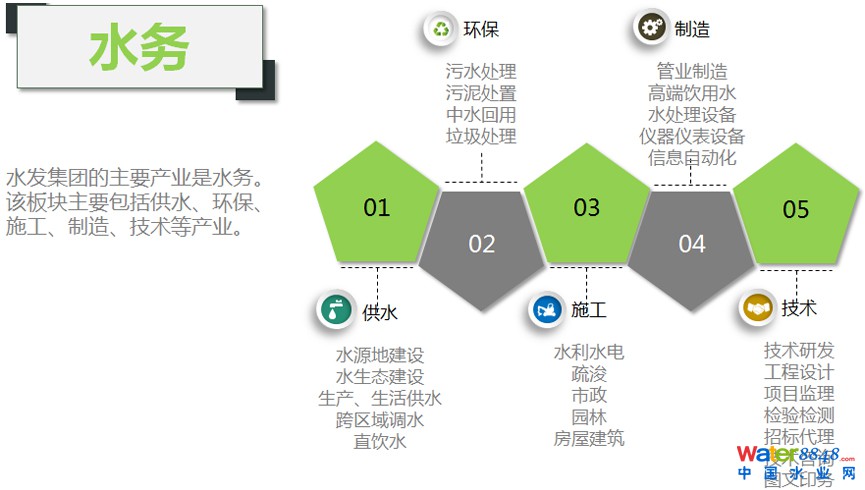 水發(fā)集團(tuán)緊緊圍繞服務(wù)民生、服務(wù)社會(huì)、服務(wù)經(jīng)濟(jì)、服務(wù)大局的宗旨,本著“產(chǎn)權(quán)清晰、權(quán)責(zé)明確、政企分開、管理科學(xué)”的要求,充分發(fā)揮在水利行業(yè)中的融資載體、投資主體、經(jīng)營(yíng)實(shí)體的作用,堅(jiān)持“公益性融資和經(jīng)營(yíng)性投資并重,外延擴(kuò)張和內(nèi)強(qiáng)素質(zhì)并重,長(zhǎng)線新上項(xiàng)目和短線重組企業(yè)并重”的戰(zhàn)略方針,以資本運(yùn)營(yíng)為載體,以資產(chǎn)經(jīng)營(yíng)管理為基礎(chǔ),以涉水項(xiàng)目為重點(diǎn),以股權(quán)持有和收益為支撐,實(shí)現(xiàn)了跨越式發(fā)展。截至2016年底,已發(fā)展成為擁有集團(tuán)公司7個(gè),資產(chǎn)超350億元、員工過10000人的大型國(guó)有企業(yè)。