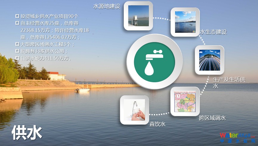 公司自成立以來,按照“立足山東、布局全國(guó)、根植水務(wù)、多元發(fā)展”的思路,堅(jiān)持“上善若水,發(fā)展惠民”的發(fā)展宗旨,涉及水源地建設(shè)、水利風(fēng)景區(qū)建設(shè)、水生態(tài)文明建設(shè)、城鄉(xiāng)供水、污水處理、中水回用、污泥處理、工程施工、水生產(chǎn)制造、水中介服務(wù)、農(nóng)業(yè)開發(fā)、醫(yī)療養(yǎng)老、教育、旅游、地產(chǎn)等民生行業(yè),已成為山東資金規(guī)模最大、產(chǎn)業(yè)鏈最為完整、綜合實(shí)力最強(qiáng)的特大型水務(wù)集團(tuán),在全國(guó)省級(jí)水利投融資平臺(tái)中處于領(lǐng)先位置。
