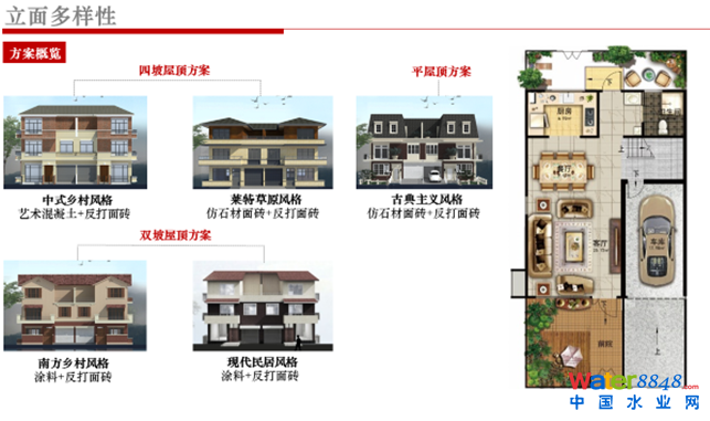 (4)建筑工業(yè)化等于標(biāo)準(zhǔn)化、千樓一面。生產(chǎn)方式和建筑形制往往是對應(yīng)的。當(dāng)新的生產(chǎn)方式出現(xiàn)時,相應(yīng)的建筑形制也會發(fā)生變化。而我們在學(xué)習(xí)西方現(xiàn)代建筑的過程中,注重的是工業(yè)化生產(chǎn)方式在建筑形制上表現(xiàn)結(jié)果,即現(xiàn)代主義,缺失的是深刻理解生產(chǎn)方式與建筑之間的深層聯(lián)系。再如某裝配式低層民居,通過不同屋頂(四坡、雙坡、平屋面)方案、不同裝飾材料實(shí)現(xiàn)了立面多樣化。