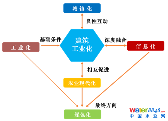 建筑工業(yè)化與工業(yè)化、城鎮(zhèn)化、信息化、農(nóng)業(yè)現(xiàn)代化、綠色化之間的關(guān)系。工業(yè)化是建筑工業(yè)化的基礎(chǔ)和先決條件;城鎮(zhèn)化的發(fā)展與建筑工業(yè)化帶來需求和市場條件,建筑工業(yè)化為城鎮(zhèn)化建設(shè)提供良好的產(chǎn)業(yè)支撐;信息技術(shù)是重要工具和手段,體現(xiàn)為信息化與建筑工業(yè)化的深度融合;農(nóng)業(yè)現(xiàn)代化帶來的農(nóng)業(yè)勞動力的減少和非農(nóng)產(chǎn)業(yè)的擴(kuò)大,推動建筑工業(yè)化向更高水平邁進(jìn);同時以建筑工業(yè)化為支撐的城鎮(zhèn)化促進(jìn)農(nóng)業(yè)勞動力的轉(zhuǎn)移提升,統(tǒng)籌城鄉(xiāng)經(jīng)濟(jì)的共同發(fā)展;綠色化是最終方向,上述的這些都是為實(shí)現(xiàn)綠色建造,推進(jìn)生態(tài)文明建設(shè)。