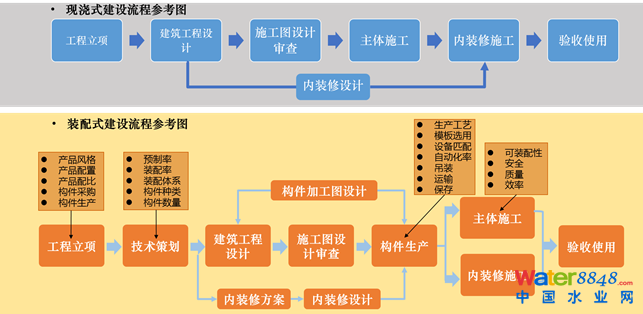 圖6 現(xiàn)澆式和裝配式建設(shè)流程對比