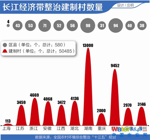 在長江經(jīng)濟帶地區(qū),包括三峽庫區(qū)及其上游和鄱陽湖、洞庭湖、撫仙湖、洱海等重要飲用水水源地,以及145個水質(zhì)需改善控制單元范圍內(nèi)的村莊,涉及580個縣(市、區(qū))5.05萬個建制村,約占全國整治任務的36%。