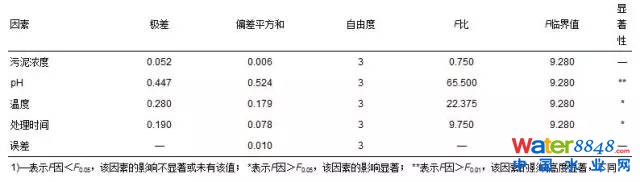 表 3 污泥SCOD正交試驗(yàn)極差及方差分析 1)