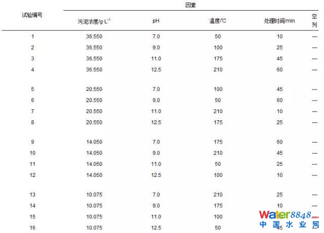 選擇污泥濃度、 pH、 溫度和處理時間4個因素,并取4個水平進(jìn)行熱堿處理正交試驗(yàn),選擇L9(45)正交表,正交試驗(yàn)設(shè)計表如表 1所示.