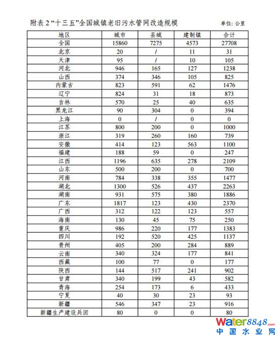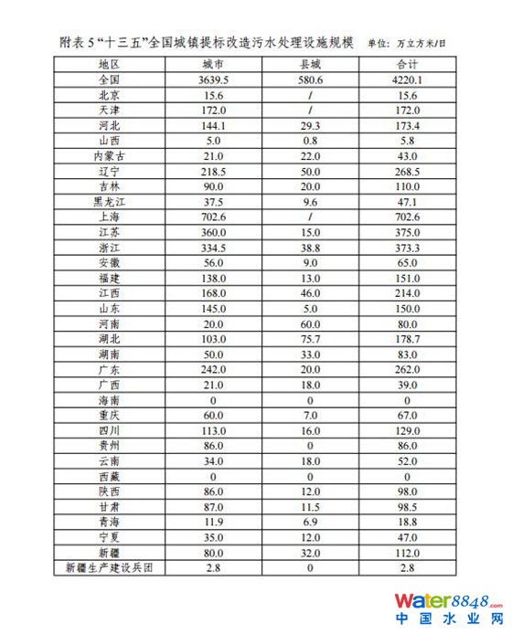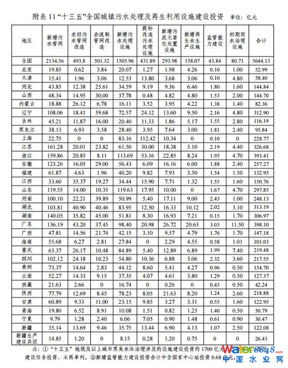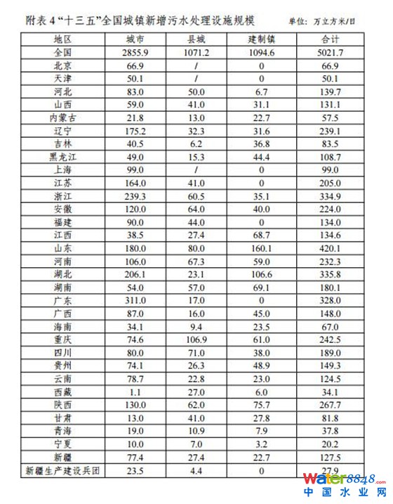 附件:“十三五”全國城鎮(zhèn)污水處理及再生利用設(shè)施建設(shè)規(guī)劃