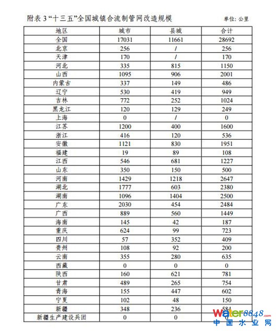 附表 3 “十三五”全國城鎮(zhèn)合流制管網(wǎng)改造規(guī)模..................................................... 16