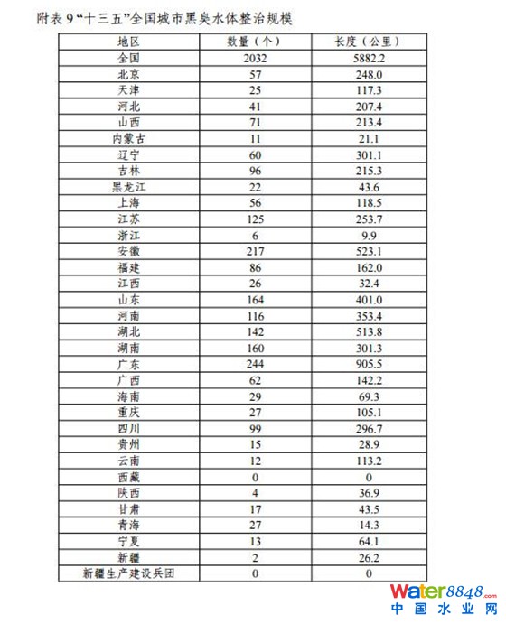 附表 9 “十三五”全國城市黑臭水體整治規(guī)模......................................................... 21