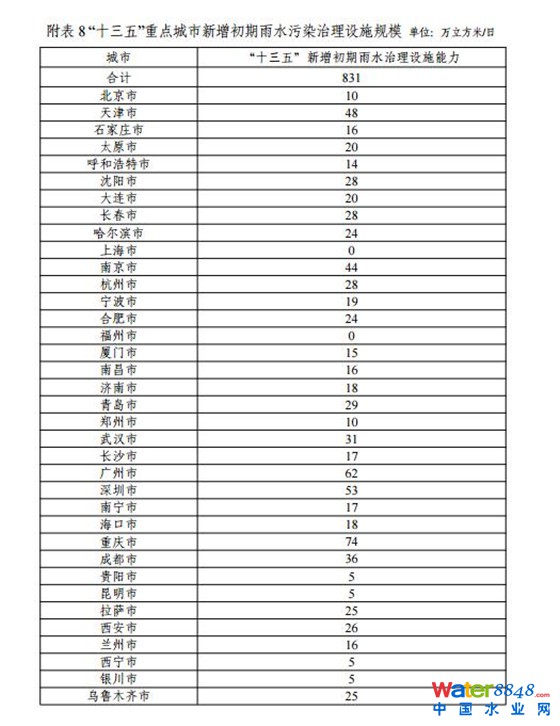 附表 8 “十三五”重點(diǎn)城市新增初期雨水污染治理設(shè)施規(guī)模................................. 21