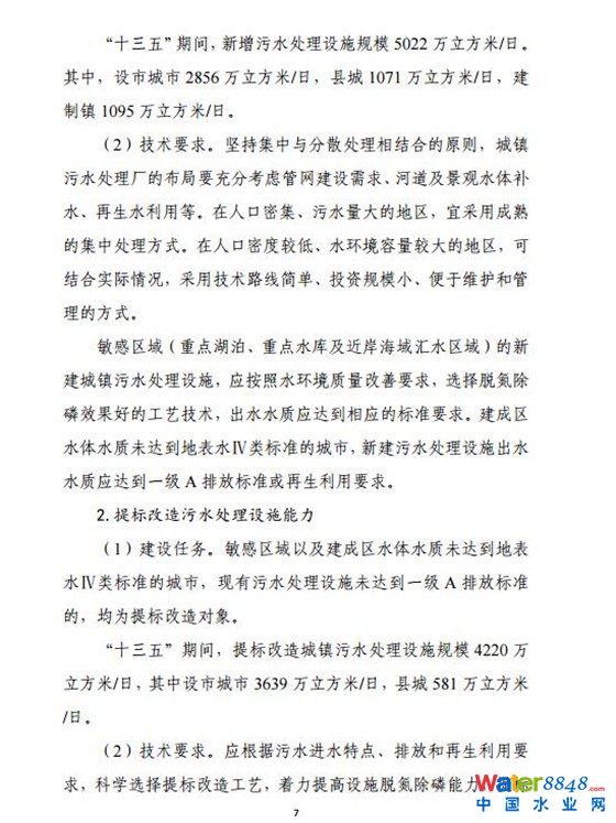“十三五”全國城鎮(zhèn)污水處理及再生利用設(shè)施建設(shè)規(guī)劃