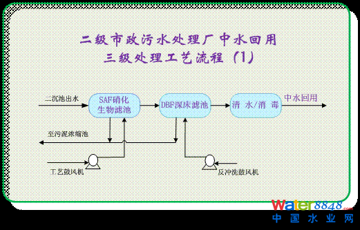 奧迪菲中水回用處理解決方案是針對(duì)缺水地區(qū)以市政污水處理廠的一級(jí)或二級(jí)排放為水源,經(jīng)過(guò)好氧生化、深床過(guò)濾和消毒使出水達(dá)到各種回用要求的處理工藝。是既能使污水無(wú)害化,又能使污水資源化,節(jié)約淡水資源,是我國(guó)當(dāng)前和未來(lái)相當(dāng)長(zhǎng)的時(shí)間內(nèi)重點(diǎn)推廣的處理技術(shù)。目前市場(chǎng)上采用的處理工藝較繁雜,良莠不齊。有的過(guò)于簡(jiǎn)單,只能去除以懸浮物為主體的污染物,對(duì)溶解性的污染物無(wú)法去除,有些工藝又過(guò)于復(fù)雜,如采用微濾或超濾等膜分離技術(shù),投資及運(yùn)行成本過(guò)高,操作程序復(fù)雜,運(yùn)行維護(hù)要求高,雖然出水水質(zhì)很好,但由于設(shè)備的性?xún)r(jià)比很低,難伺候,市場(chǎng)推廣遇到瓶頸制約。