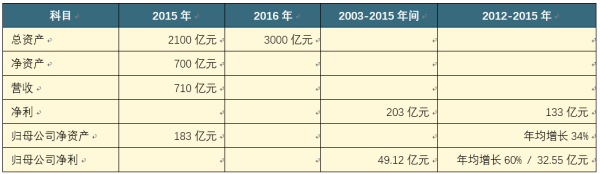 一系列大刀闊斧的改革與發(fā)展舉措,帶來(lái)了清華控股的快速增長(zhǎng)。截至2015年底,清華控股合并總資產(chǎn)達(dá)2100億元,當(dāng)年總收入710億元,歸屬于母公司的凈資產(chǎn)183億元。同期北大方正集團(tuán),總資產(chǎn)為1966億元,但總收入為805億元。截至2016年6月底,清華控股總資產(chǎn)已接近3000億元。在2003-2015年間,清華控股累計(jì)實(shí)現(xiàn)利潤(rùn)總額203億元,累計(jì)歸屬于母公司的凈利潤(rùn)49.12億元。其中,2012-2015年累計(jì)實(shí)現(xiàn)利潤(rùn)總額133億元,累計(jì)歸屬于母公司凈利潤(rùn)32.55億萬(wàn)。2012-2015年歸屬于母公司的凈資產(chǎn)年均增長(zhǎng)34%,歸屬于母公司的凈利潤(rùn)年均增長(zhǎng)60%。