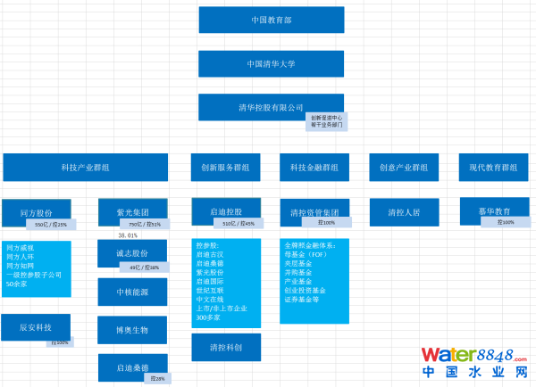 清華控股直接擁有同方股份、紫光集團(tuán)、啟迪控股、誠(chéng)志股份四大綜合性集團(tuán),每一個(gè)集團(tuán)旗下又擁有非常龐雜的業(yè)務(wù)和子公司、孫公司。