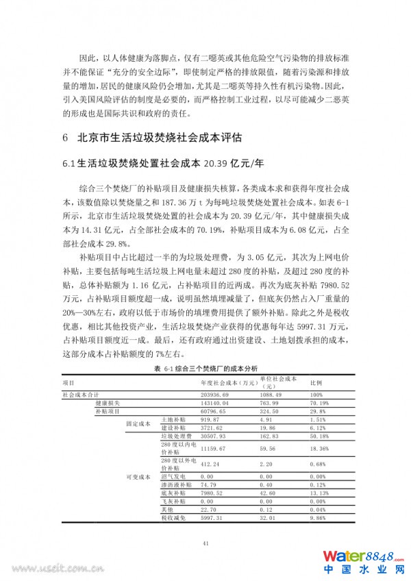 6.1 生活垃圾焚燒處置社會成本20.39 億元/年